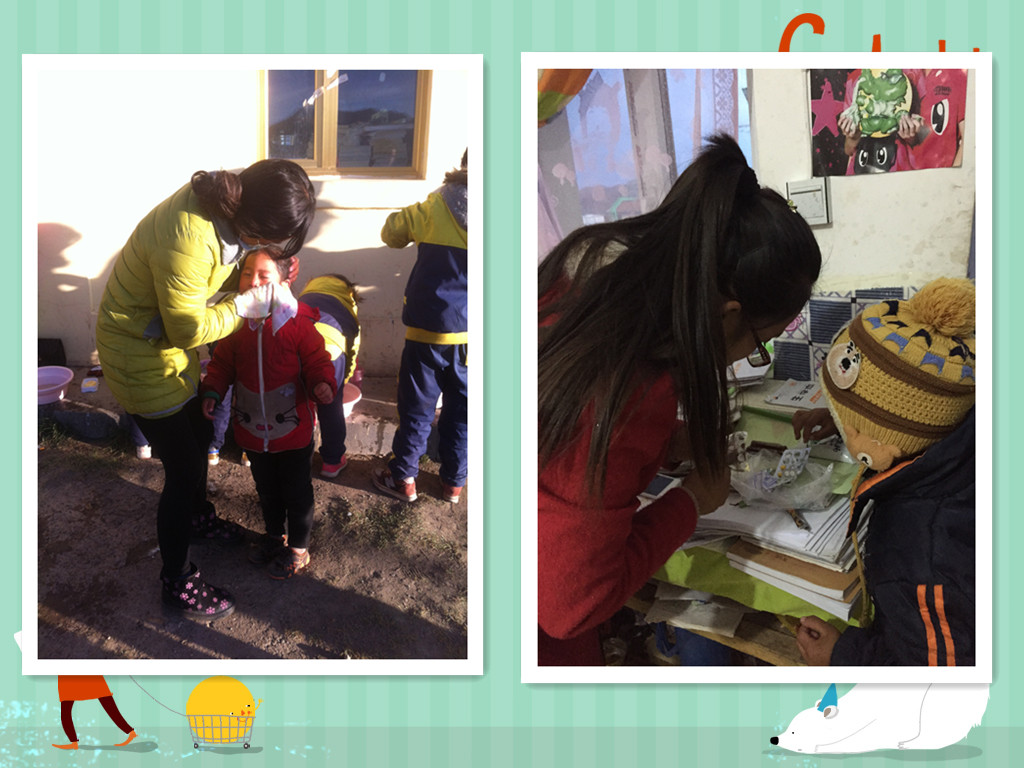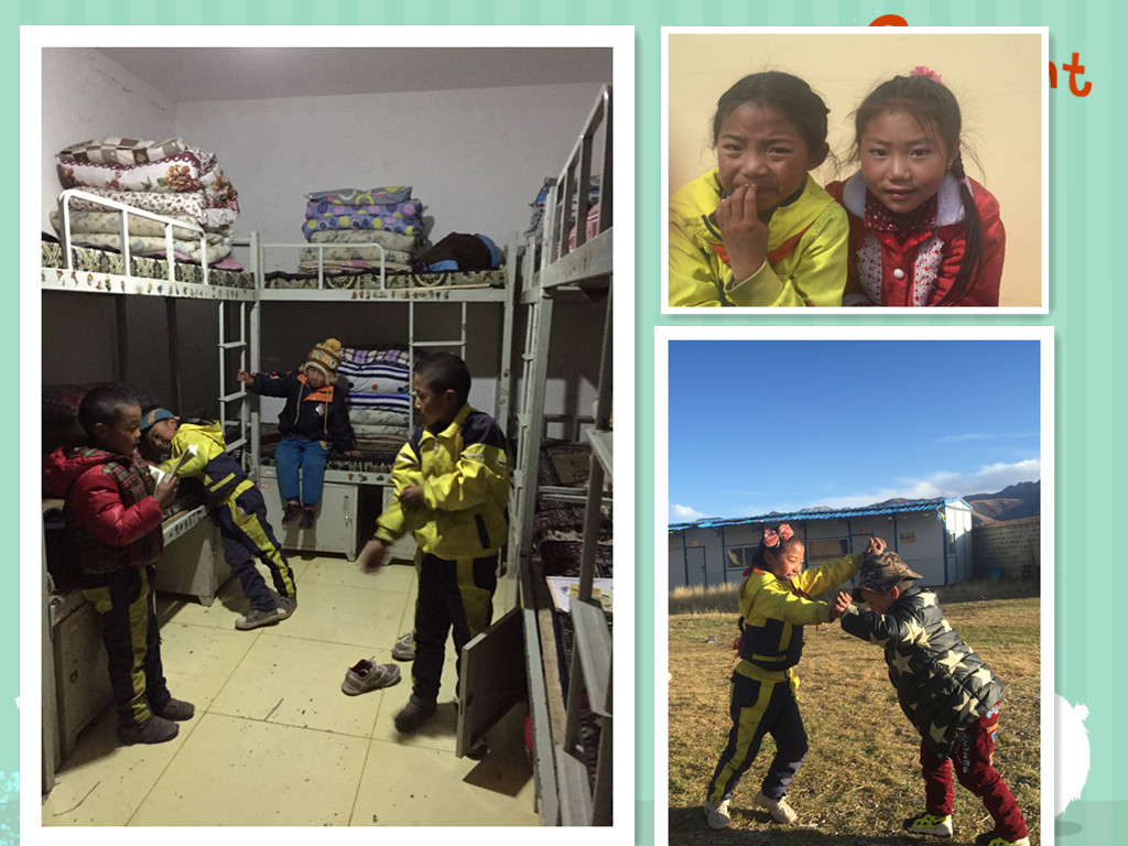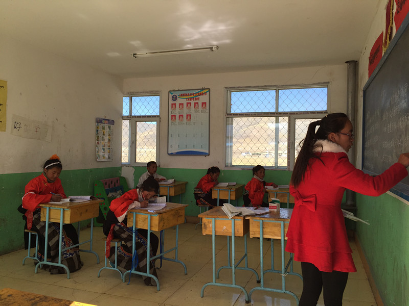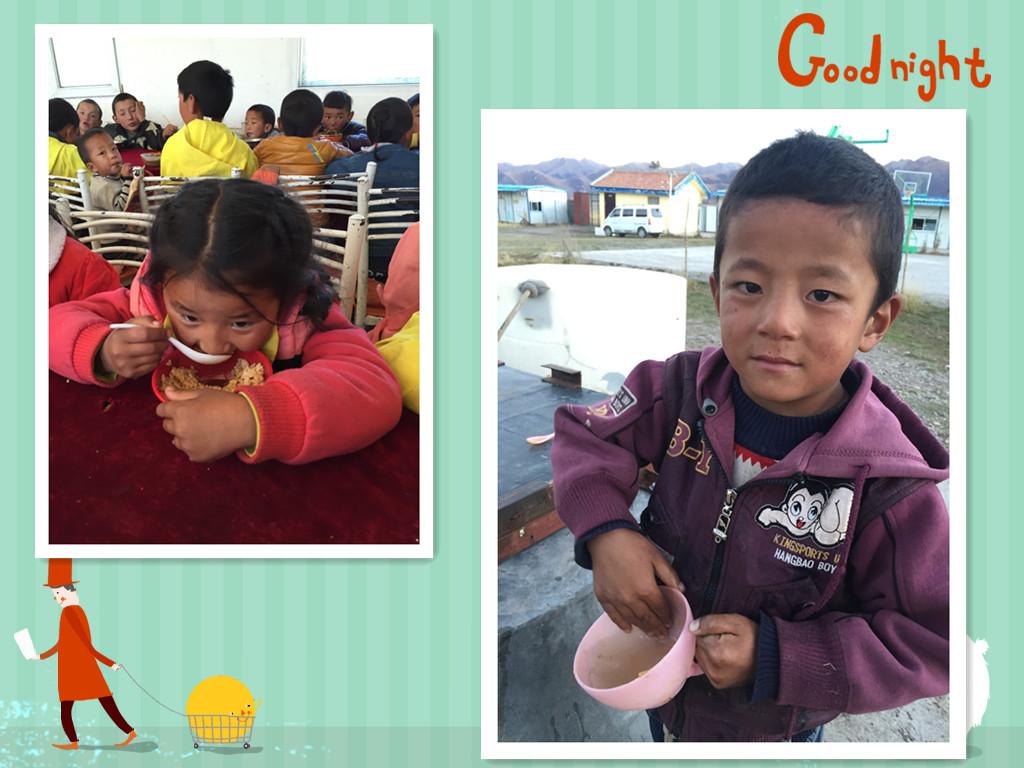 孩子们艰难,老师们也不容易。早上7点,天还没有亮,老师会逐一敲开每个宿舍的门,帮助孩子们穿衣,监督和指导孩子们做好内务整理,然后带领孩子们晨读、吃早饭。方便面是全校师生每天的早餐!老师们把方便面煮在取暖的铁炉上就离开了,面煮好了,水煮干了,甚至是面都煮糊了,老师们却还没有回来吃,原来他们是照顾学生吃饭、洗脸、上课去了。当老师把这一整套忙完,轮到自己没有课时再回来吃早饭,其实早已是10点过了。学校80个学生,全校只有一个炊事员,所以老师们的伙食都是自己解决,他们分成几个小组轮流做饭,饭菜并没有花样,每天都是一样的,但老师们却从来没有剩饭剩菜的习惯,哪怕是一颗米,一滴油。老师们勤俭节约、老师们团结真诚,老师们更在倾心付出,他们的生活里没有电视娱乐、没有灯红酒绿、更没有休闲享乐,他们把所有的时间和精力都放在了孩子们身上,一个月回家一次,每天起早贪黑,他们不仅要帮助孩子们学习,更要帮助孩子们学会独立,教会孩子们穿衣吃饭,洗头洗脸,他们必须照顾生病的孩子,残疾的孩子,他们给予孩子们的是妈妈的爱。在遥远的青藏高原,遥远的上巴塘小学,我被这些90后的老师们深深的震撼和感动了,这些代课老师每天重复一样的生活,从早上7点到晚上10点,几乎没有时间属于自己,他们把自己最美的年龄献给了雪域高原的孩子,却独享着那份孤独、寒冷、封闭和每个月仅有的1500元代课费!