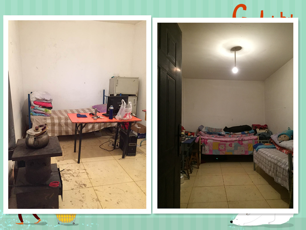 老师们的宿舍简陋得只剩下床了,学校唯一可以上网的电脑房间算是“豪配”。