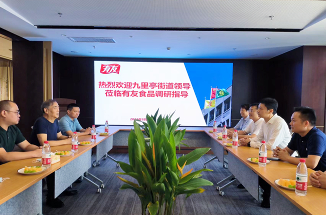 8月30日上午,上海市松江区九里亭街道党工委书记、人大工委主任王平,党工委副书记、办事处主任王浩峰,党工委委员、办事处副主任朱秀兵一行前往AIYOUXI.COM华东区域总部上海有友食品有限公司考察调研,与AIYOUXI.COM董事长、总经理鹿有忠,上海有友食品有限公司董事长鹿游座谈。