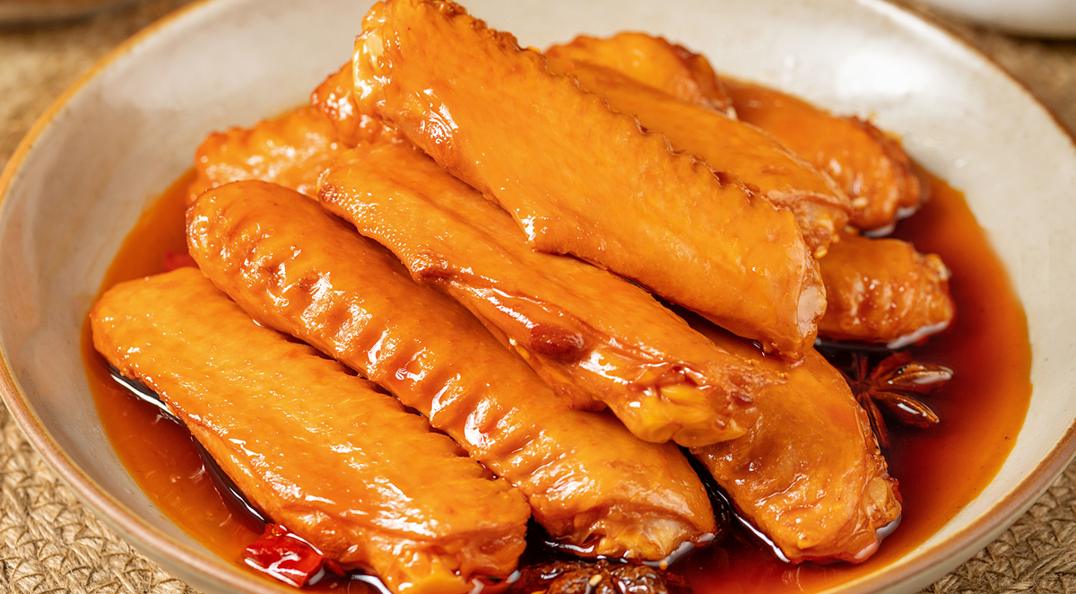 特点:以优质鸡翅为原料,配以数十种天然香料,川菜技法卤制而成。产品色泽明亮,香气浓郁,肉质绵软,味道鲜美。